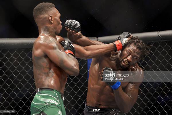 Titelkampf im Mittelgewicht: Israel Adesanya (Champion) besiegte Jared Cannonier einstimmig (49-46, 49-46, 50-45).