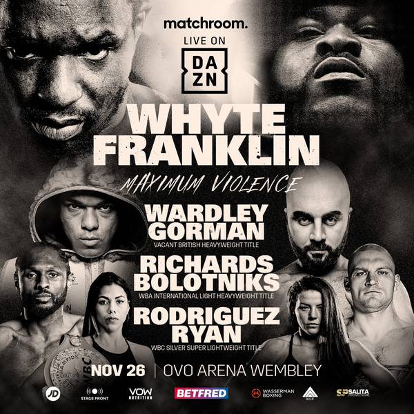 Es wurde offiziell bestätigt, dass der aktuelle Anwärter auf den WBC-Weltmeistertitel im Schwergewicht , Dillian Whyte (28-3, 19 KOs), am 26. November im Rahmen des Matchroom Boxing-Abends in London in den Ring zurückkehren wird.