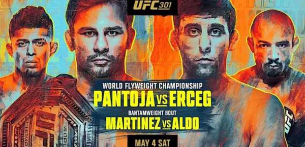 UFC 301 findet am Abend des 5. Mai in Rio de Janeiro statt und wird von einem Kampf zwischen Fliegengewichtschampion Alexandre Pantoja und Herausforderer Steve Erceg angeführt. Im Co-Hauptkampf wird Jose Aldo gegen Jonathan Martinez antreten. Hier ist die vollständige Karte des Turniers: