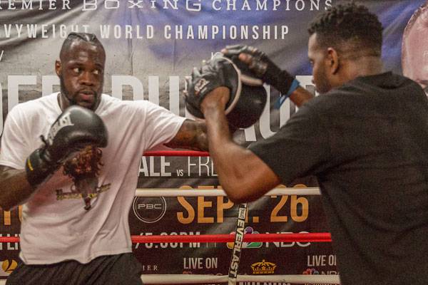 Undefeated heavyweight world champion Deontay “The Bronze Bomber” Wilder hosted a jam-packed media workout Tuesday at Skyy Gym in Northport, AL as he prepares to defend his title in primetime on Saturday, February 25 in the main event of Premier Boxing Champions on FOX and FOX Deportes from Legacy Arena at the BJCC in Birmingham, Alabama.