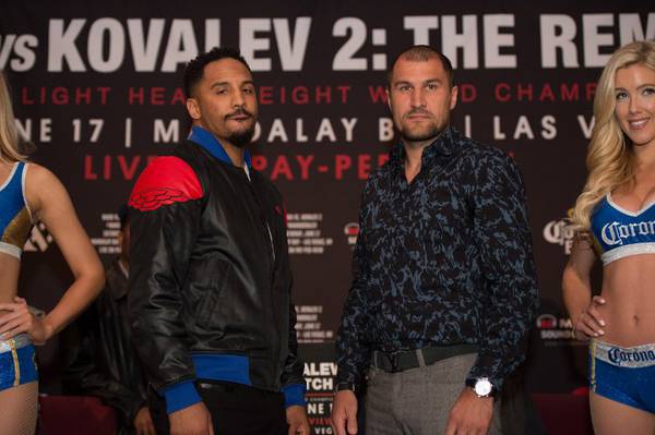 Unified light heavyweight champion Andre “SOG” Ward (31-0, 15 KOs) and former light heavyweight champion Sergey “Krusher” Kovalev (30-1-1, 26 KOs) wrapped up their three city press conference tour Wednesday afternoon in Los Angeles as they met at the Hollywood Roosevelt in Hollywood, California to announce their much anticipated rematch taking place Saturday, June 17 at the Mandalay Bay Events Center in Las Vegas live on HBO Pay-Per-View.