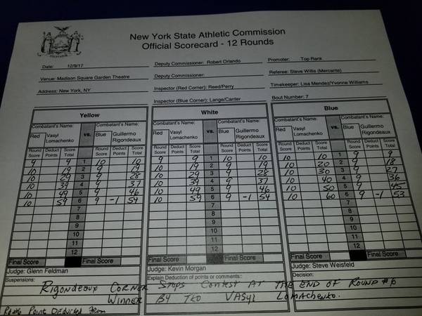 Lomachenko - Rigondeaux. Official scorecards