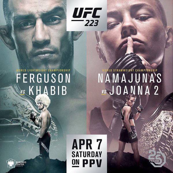 Watch the official poster of UFC 223, which will be held on April 7 at Barclays Center in Brooklyn, USA. In the main event of the evening, interim lightweight champion Tony Ferguson will meet undefeated Khabib Nurmagomedov in a battle for a full title. In the co-main event we will see a title rematch in the women's minimum division between Rose Namajunas and Joanna Jedrzejczyk.