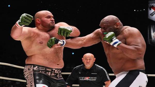 The MMA fight between Bob Sapp and former sumo wrestler Osunaarasi Kintaro ended very unusually. By the end of the fight, the fighters were so tired that they hardly moved around the ring. And no wonder, because both athletes weigh more than 150 kg.