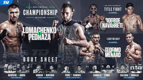 Live broadcast of the boxing evening from New York, in the main event of which Vasyl Lomachenko will meet José Pedraza in a unifying fight. WBA and WBO lightweight titles will be at stake.