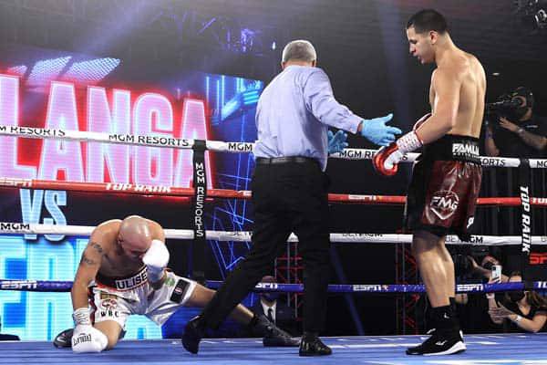 Undefeated super middleweight puncher Edgar Berlanga (16-0, 16 KOs) scored another round one knockout over Ulises Sierra (15-2-2, 9 KOs) in one of Saturday night's fights at the MGM Grand in Las Vegas. Berlanga sent Sierra to the floor three times before it was stopped at 2:40. Sierra, former sparring partner of Canelo and Andre Ward, has never lost by TKO before.