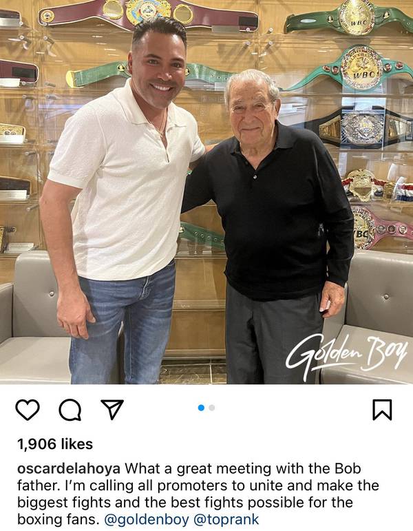For the sake of Garcia’s fight, Oscar de la Hoya met with his colleague Bob Arum, about which he published a corresponding post on Instagram and called on other promoters to “unite”: “Great meeting with Father Bob. I call on all promoters to unite and organize the biggest fights and the best fights for boxing fans.”