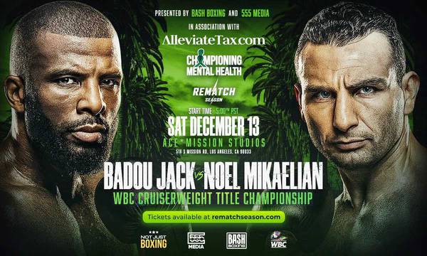 The rematch between WBC cruiserweight champion Badou Jack (29-3-3, 17 KOs) and former champion Noel Mikaelyan (27-3, 12 KOs) on December 13 in Los Angeles will be broadcasted on pay-per-view in the USA on cable and satellite television, as well as on digital platforms including Prime Video, PPV.COM, TrillerTV, and Fubo. To watch this fight and the undercard, boxing fans in America will have to pay $29.99.