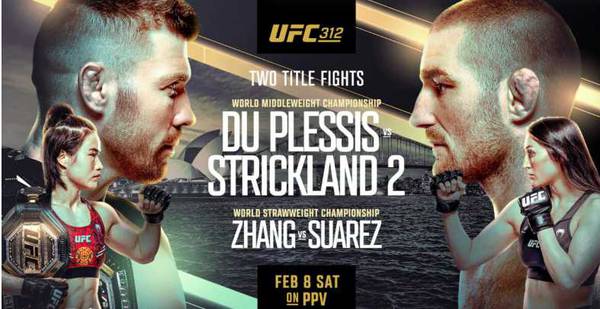 On February 9, the UFC promotion will hold its 312th event in Sydney, headlined by the Du Plessis vs. Strickland fight. Here is the card of the upcoming event.