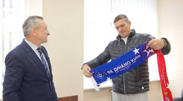 Чемпион мира в первом тяжелом весе по версии WBO Александр Усик (10-0, 9 КО) признался, что всегда болел за киевское «Динамо». Накануне матча киевлян с португальской «Бенфикой» знаменитый украинский боксер побывал в офисе «Динамо» и получил в подарок от вице-президента клуба Алексея Семененко игровую футболку и шарф, посвященный сегодняшнему матчу Лиги чемпионов «Динамо» — «Бенфика».