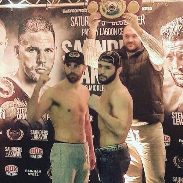 Чемпион WBO в среднем весе Билли Джо Сондерс (23-0, 12 КО) и претендент на его титул Артур Акавов (16-1, 7 КО) прошли официальную процедуру взвешивания, успешно уложившись в рамки отведенной весовой категории. На взвешивании в прекрасном расположении духа присутствовал также экс-чемпион мира в супертяжелом весе Тайсон Фьюри.