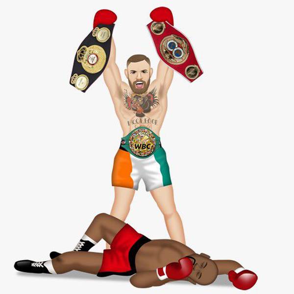 Согласно bjpenn.com, МакГрегор выложил в соц.медиа анимированное изображение, где он в обеих руках держит два пояса чемпиона мира по боксу, наряду с титулом WBC, вокруг талии, а Мейвезер лежит поверженный в ногах ирландца.