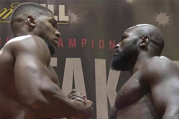 Энтони Джошуа (19-0, 19 KO) и Карлос Такам (35-3-1, 27 KO) прошли официальную процедуру взвешивания. На весах Джошуа показал рекордную в карьере отметку в 115,2 кг. Вес Такама составил 106,8 кг. До этого максимальный свой вес Энтони показывал перед апрельской встречей с Владимиром Кличко — 113,4 кг. Четыре года назад перед профи дебютом Джошуа весил 104,6 кг.
