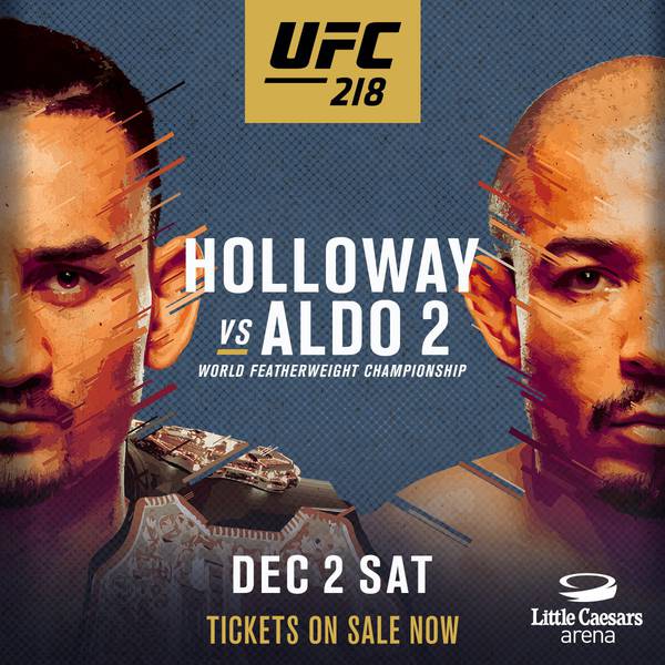 Второй поединок Макса Холлоуэйя и Жозе Альдо станет главным событием турнира UFC 218, который пройдет 2 декабря в Детройте. Изначально в рамках этого шоу Холлоуэй должен был встретиться с Фрэнки Эдгаром, но последний получил травму в начале этой недели и вынужден был сняться с боя.
