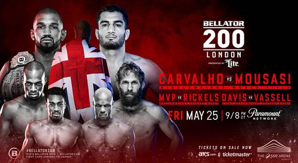 Сегодня в Лондоне состоится вечер смешанных единоборств Bellator 200, в главном событии которого чемпион организации в среднем весе бразилец Рафаэль Карвальо встретится с прославленным нидерландцем армянского происхождения Гегардом Мусаси.