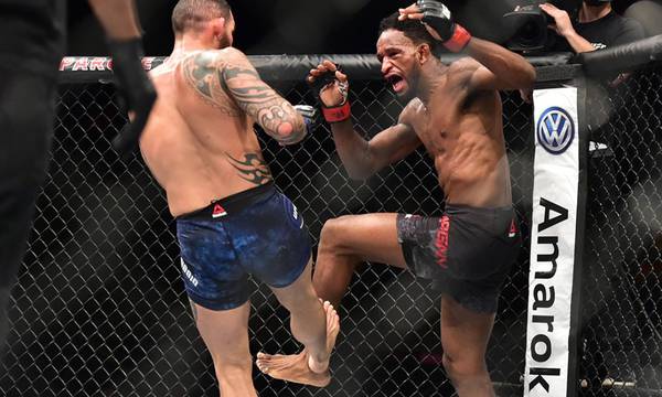 Полулегкий вес: Рикардо Ламас победил Даррена Элкинса техническим нокаутом, 3 раунд.