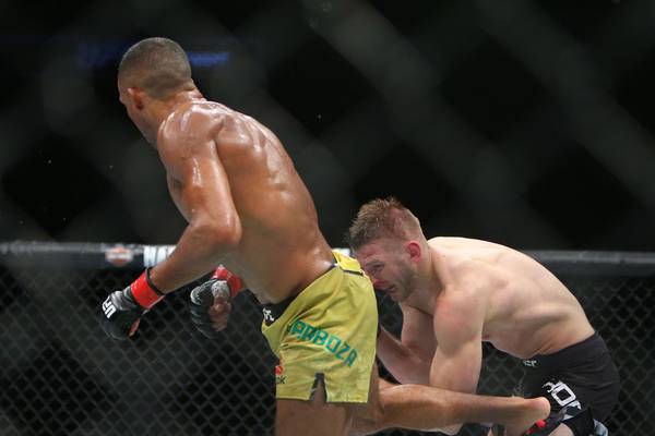 Зрелищный бразильский легковес Эдсон Барбоза одержал победу нокаутом над новозеландцем Дэном Хукером в рамках со-главного события шоу UFC on Fox 31 в Милуоки, штат Висконсин.