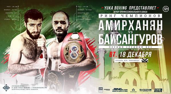 Прямая трансляция вечера бокса из Казани, в главном событии которого Хусейн Байсангуров (14-0, 12 КО) встретиться с Арамом Амирханяном (11-0-1, 3 КО). На кону встречи будут титулы IBF International, WBO International и WBA Continental в первом среднем весе.