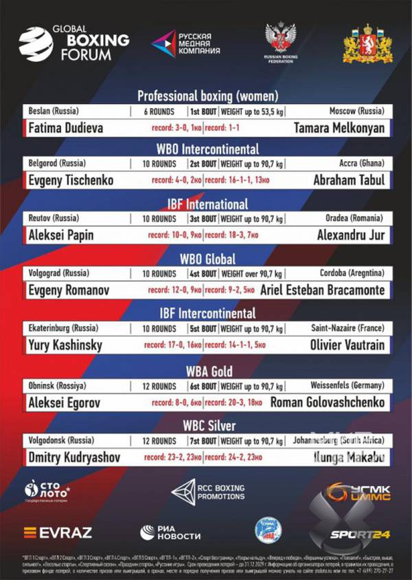 Прямая трансляция вечера бокса из Екатеринбурга, в главном событии которого Илунга Макабу (24-2, 23 КО) встретится с Дмитрием Кудряшовым (23-2, 23 КО).