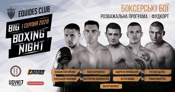 1 августа в парково-отельном комплексе Equides под Киевом состоится дебютный вечер бокса от промоутерской организации Олимпийского чемпиона и бывшего абсолютного чемпиона в первом тяжелом весе Александра Усика Usyk-17 Promotion. В главных событиях турнира должно состояться три поединка в супертяжелом весе: Владислав Сиренко (13-0, 12 КО) — Павел Кроленко (3-5, 2 КО), Александр Захожий (13-0, 10 КО) — Константин Довбыщенко (7-6-1, 4 КО) и второй профи поединок Виктора Выхриста, противник которого еще не объявлен.