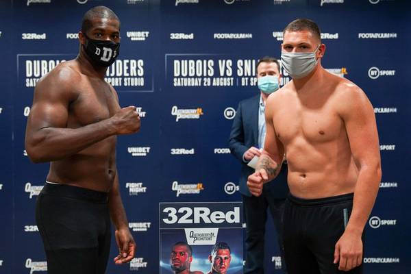 На официальной церемонии взвешивания в лондонской телестудии Даниэль Дюбуа (14-0, 13 КО) оказался тяжелее Рикардо Снайдерса (18-1, 8 КО). Британец показал на весах 110,7 кг, а голландец — 97,5 кг.