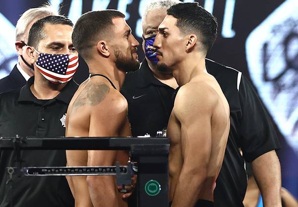 Василий Ломаченко и Теофимо Лопес прошли официальную процедуру взвешивания накануне своего поединка 17 октября в Лас-Вегасе. На кону встречи будет звание абсолютного чемпиона в легком весе. Ломаченко и Лопес показали одинаковый вес в 135 фунтов (61,23 кг).