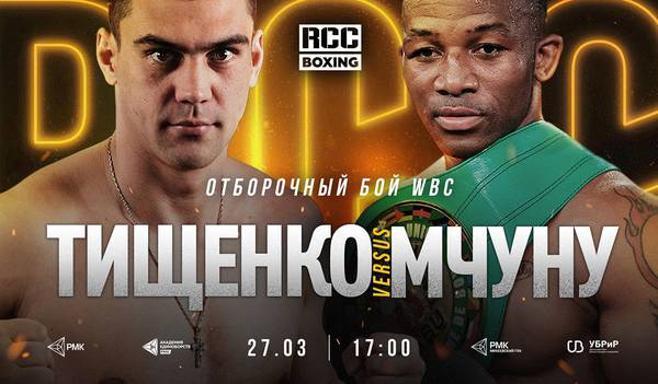 Олимпийский чемпион в первом тяжелом весе Евгений Тищенко (8-0, 6 КО) проведет свой следующий бой 27 марта в Екатеринбурге против южноафриканца Табисо Мчуну (22-5, 13 КО). На кону встречи будет звание официального претендента WBC и титул серебряного чемпиона WBC, которым с конца 2019 года владеет Мчуну. Поединок Тищенко — Мчуну пройдет под эгидой RCC Boxing Promotions и возглавит турнир организации.