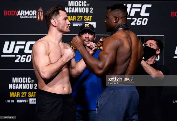 Прошло время, ничего не изменилось, буки опять больше верят в француза. Тут я с ними не согласен. Нганну быстро выдыхается, и Миочич, как раз-таки, обалденно воспользовался этим в прошлый раз. Понял, как надо действовать с ним. Не давать ему пространства, угрожать в партере и так далее.