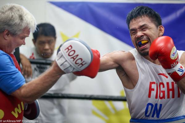 Прежде чем отправиться в боксерский зал Wild Card в Голливуде на дневную тренировку со своим тренером Фредди Роучем, Мэнни прошел у себя дома тест на наркотики от VADA (Добровольной антидопинговой ассоциации). В Wild Card Мэнни и Фредди начали почти трехчасовую тренировку с девяти раундов на лапах.