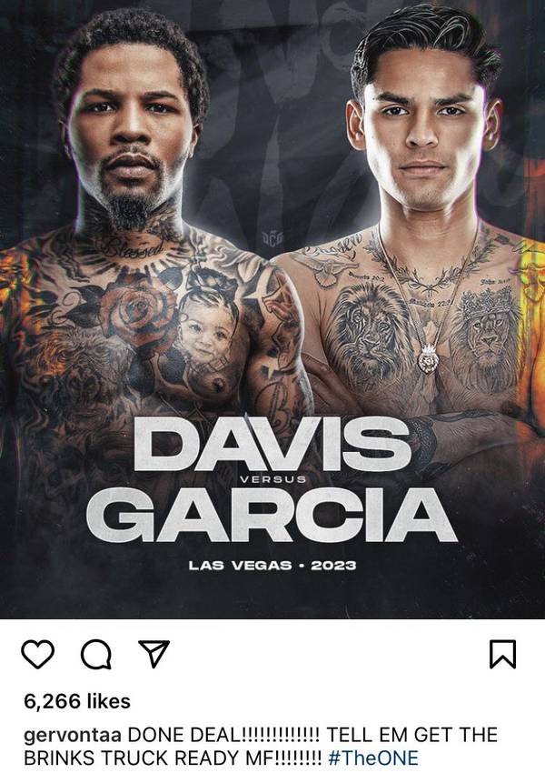 Джервонта Дэвис (27-0, 25 КО) и Райан Гарсия (23-0, 19 КО) объявили в социальных сетях, что достигли полной договоренности о бое, который состоится 15 апреля в Лас-Вегасе. Подробности этой встречи будут официально объявлены в ближайшее время.