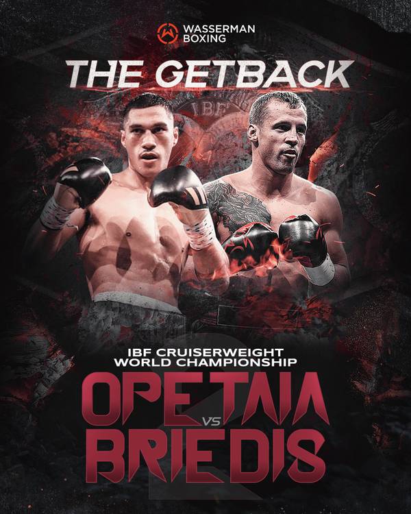 В профиле группы Wasserman Boxing, за которую выступает латвиец, сегодня был опубликован постер, рекламирующий поединок Бриедиса и Опетаи за пояс IBF в первом тяжелом весе, который вчера был официально назначен Международной боксерской федерацией.
