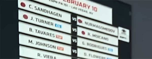 Похоже, что в UFC не отказались от идеи проведения поединка между Умаром Нурмагомедовым и Кори Сэндхагеном. На днях генеральный директор промоушена Дана Уайт снялся в очередном выпуске подкаста FULL SEND. Во время съемок в кадр попало расписание, висевшее на стене в кабинете Даны. На этом расписании указано, что бой Умара с Кори находится в разработке и может пройти 10 февраля.